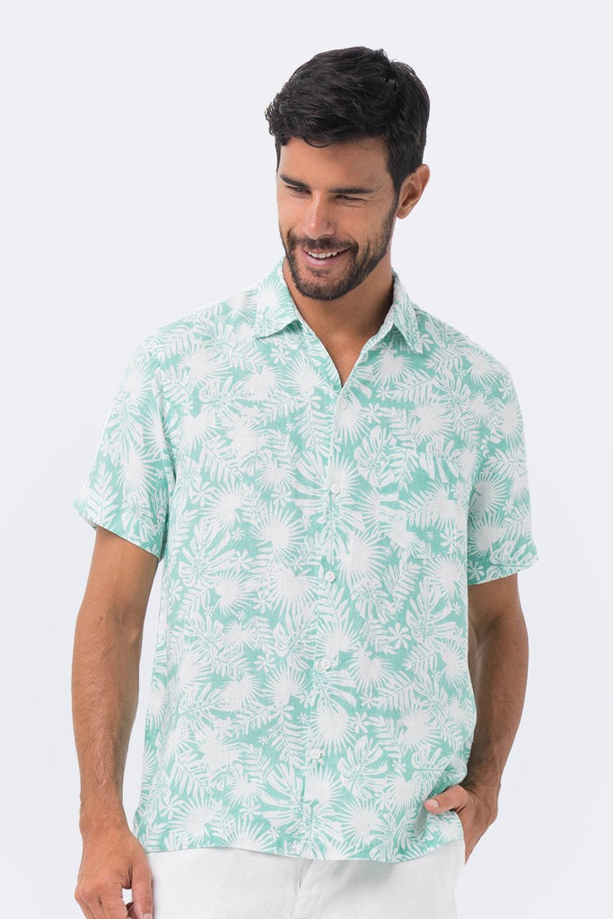 Maui Linen Shirt S/S Green Tropical Leafs
