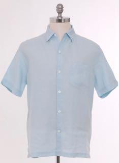 Slim fit short sleeve shirt with one breast pocket, front buttons, no zipper.