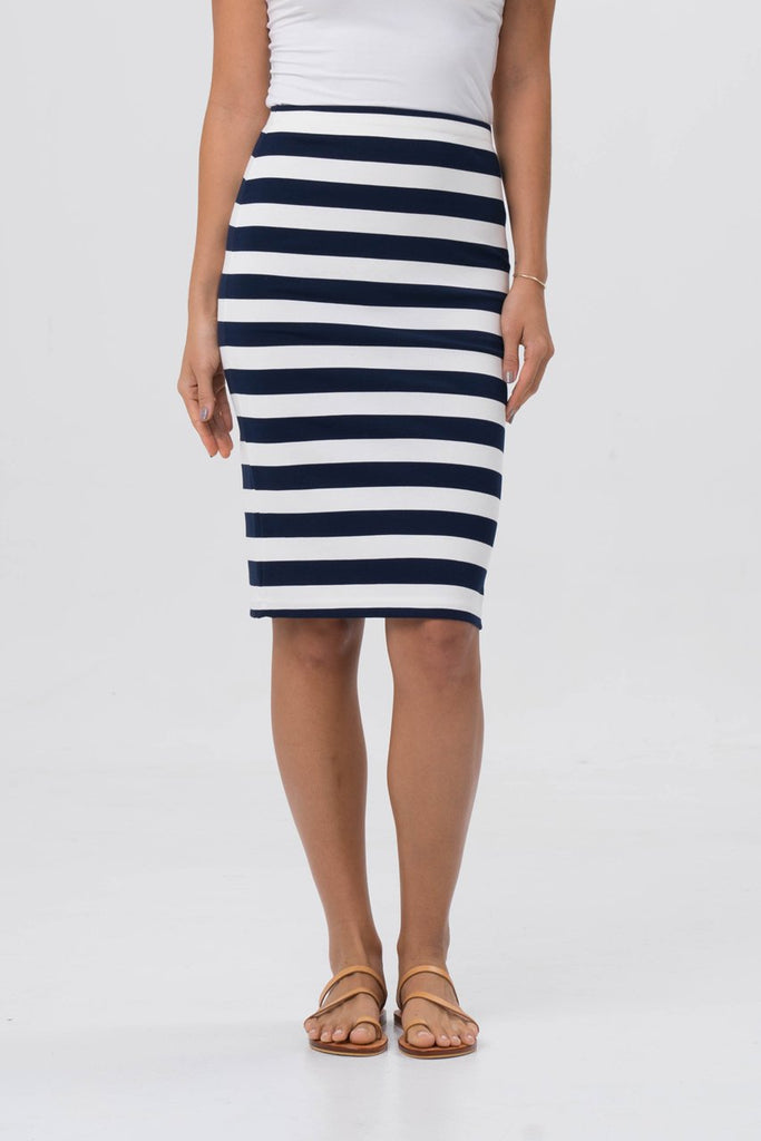 The Rhodes skirts is made of 94% Rayon and 6% Spandex. This high waisted tube skirt features, elastic wait and slim fit. For a chic look you can pair it with our basic tank top tucked in or a simple crop top.