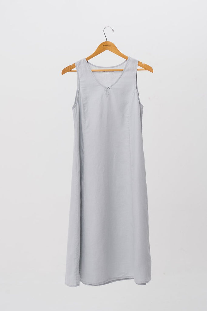 The Princess dress is made of 100% Linen. This Midi cut dress features round neckline, sleeveless, shell buttons and regular fit. Classic look for the day and night. You can pair it with our latest accessories .