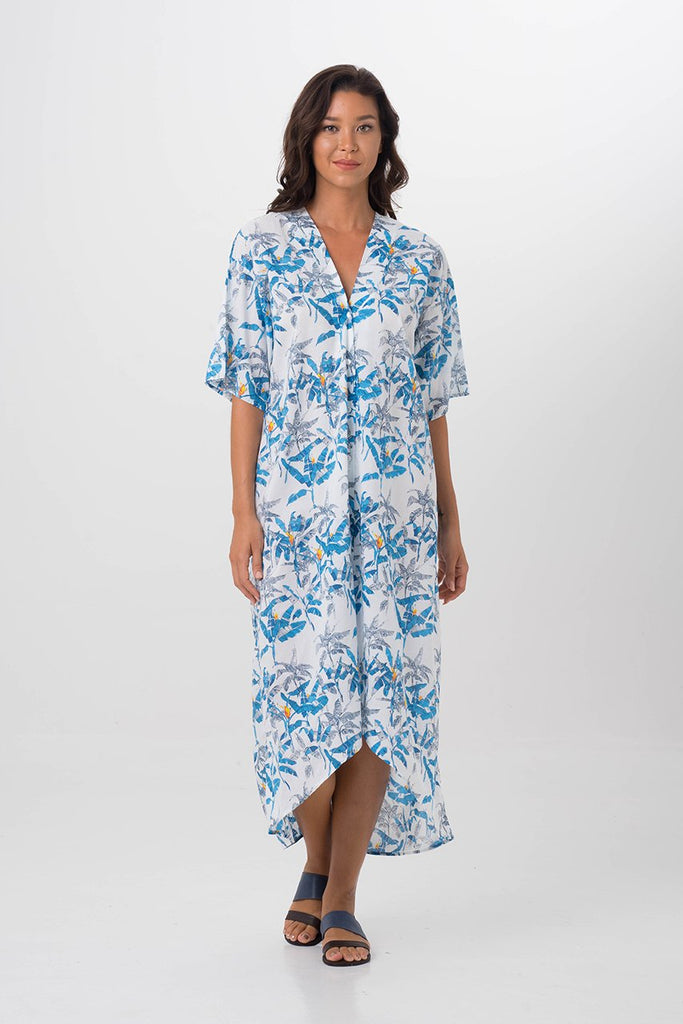 The Kaftan dress is made from 100% Cotton. This Kaftan features V neckline, kimono sleeves, buttons closure, Asymmetric hem and loose fit for all sizes. This simple beach and poolside essential makes a stylish impact. You can Pair it with our Latest accessories such as bags, strappy sandals and linen/straw hats.