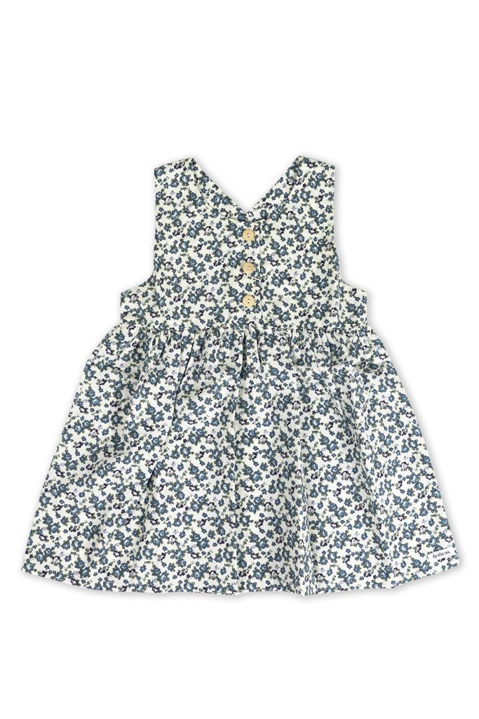 The Daisy dress dress is made of 100% Cotton. This princess dress features sleeveless, wooden buttons, round neckline, and a regular fit. A cute by the sea - life inspired dress for those island baby at heart.